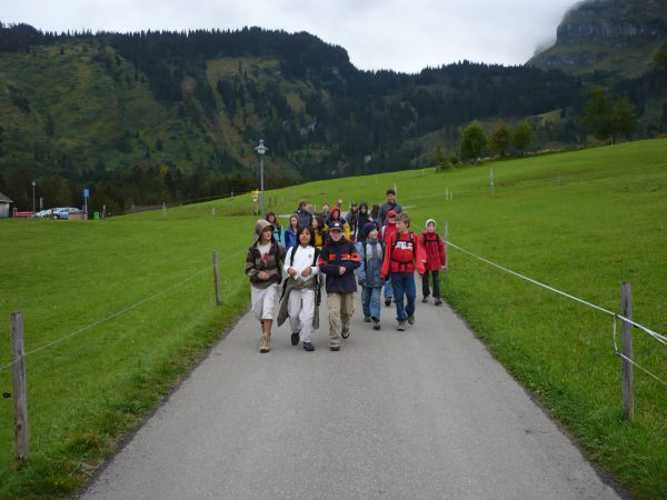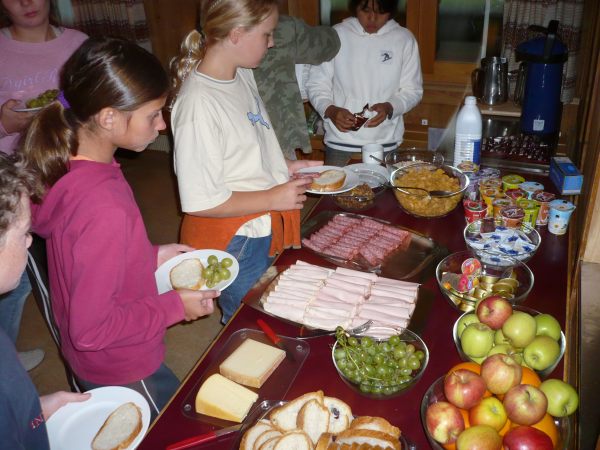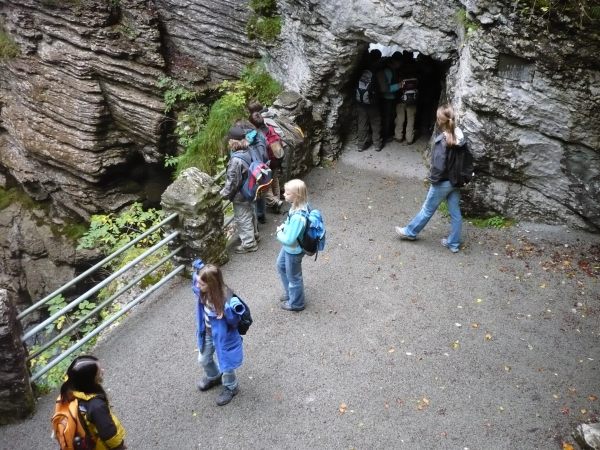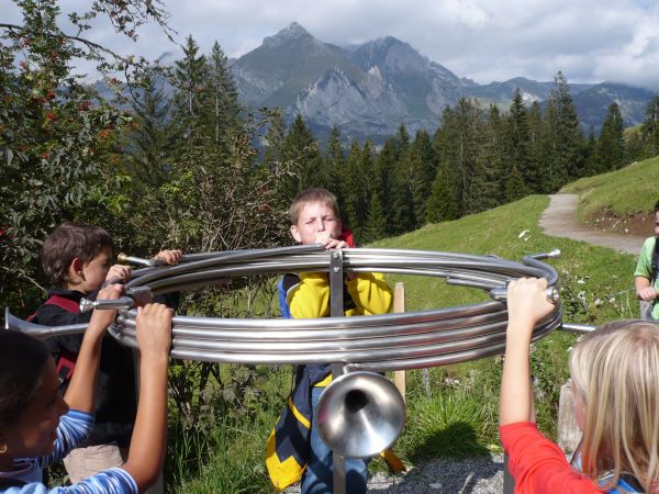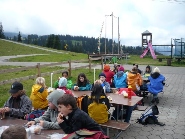 Nach einer kurzen Nacht voller Geschwätz und Gekicher standen wir auf. Flurin, Yarza, Filipe, Simon und Tyler machten das Frühstück bereit. Es gab Jogurt, Brot, Butter, Konfitüre, Früchte und verschiedene Aufschnitte. Es war sehr lecker. Wir haben einen „Ämtli-Plan“. Nach dem Frühstück mussten Anthony, Cèdric, Nicola, Nicolà und Moritz putzen und aufräumen. Larissa, Joëlle, Julia, Juliet und Tamara mussten abwaschen. Die anderen Kinder konnten spielen. Dann mussten wir unsere Wandertasche packen. Nach dem Packen liefen wir ins Tal. Der Weg war sehr steil. Wir hatten ca. eine Stunde bis ins Tal. Während wir liefen, war das Wetter recht frisch. Als wir im Tal waren, sagte Herr Zwicky: „Entweder können wir gleich zur Standseilbahn nach Iltios gehen oder die Thur-Wasserfälle ansehen und danach erst nach Iltios fahren.“ Die Mehrheit streckte für die Wasserfälle auf. Also gingen wir zu den Wasserfällen. Wir hatten ungefähr 15 Minuten bis dort hin. Wir liefen zuerst auf einem Weg an einer steilen Felswand mit Geländer vorbei. Man konnte auch durch eine Höhle nach oben steigen und die Wasserfälle von oben betrachten. Es hatte zwei Wasserfälle übereinander. Dann gingen wir wieder zurück nach Unterwasser. Mit der Klasse fuhren wir dann mit der Standseilbahn auf den Iltios. Dort assen wir zu Mittag. Es war lustig, denn wir assen in der Sitzordnung vom Morgen. Uns flogen manchmal die Verpackungen des Essens weg, weil es stark windete. Danach gingen wir auf den Spielplatz. Dieser war lustig. Es hatte ein Trampolin, ein Schiff, 2 Rutschen, 3 Schaukeln und 1 Drehnetz. Nach dem Spielen gingen wir zum Klangweg. Dort hatte es viele Klangposten, zum Beispiel Klangflöten, eine Klangmühle und andere coole Sachen. Heute gibt es Wienerli im Teig und ein Salatbuffet. Es riecht schon sehr fein aus der Küche.