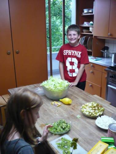 Dienstag, 9. September 2008 In der Nacht schlief ich auf einem Kajütenbett. Ich fühlte mich noch nicht so wohl, denn das Kissen und die Schlafsackdecke waren anders als zuhause. Zusätzlich waren acht Kinder in meinem Zimmer. Zum Glück durfte ich schlafen, bis ich von selbst aufwachte. Ich zog mich an und ging Ping-Pong spielen. Während ich Ping-Pong spielte, machte eine andere Gruppe das Frühstücksbuffet bereit. Es war lecker. Nach dem Frühstück machten wir Sandwiches für das Mittagessen.