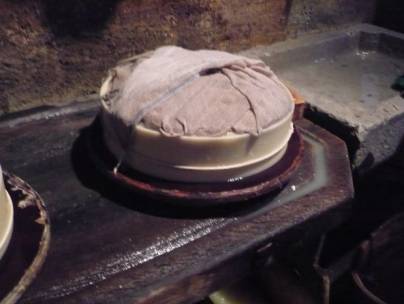 Danach schüttete Herr Frauchiger den Käse in eine runde Form. Als nächstes drückten Herr Frauchiger und Tyler den Käse in eine Form. Beim zweiten Käse durfte ich den Job von Tyler übernehmen. Dies machte mit sehr Spass.