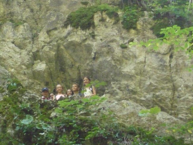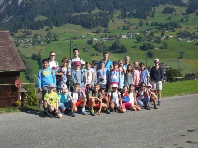 Während die Kinder geputzt haben, hatten die anderen FREIZEIT! Als dann schliesslich alle fertig waren, haben wir uns unsere Sachen geschnappt und uns raus in einen Kreis gesetzt. Dort hat Herr Zwicky gecheckt ob wir unsere Trinkflasche und unseren Notfallzettel haben. Und dann gingen wir los. Wir gingen nach Unterwasser zu den Thurfällen. Der Weg war steil und an einer Stelle so rutschig, dass ein Junge und ein Mädchen ausgerutscht sind. Zum Glück ist nichts passiert. Das Wetter war heute aber sehr schön, unterwegs machten wir darum dieses Klassenfoto: