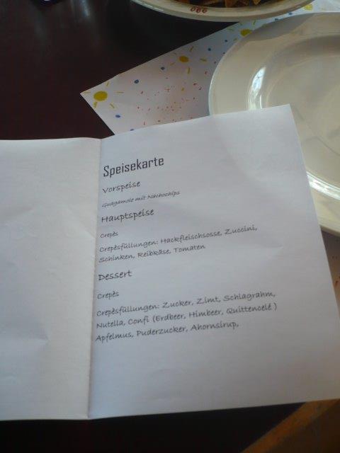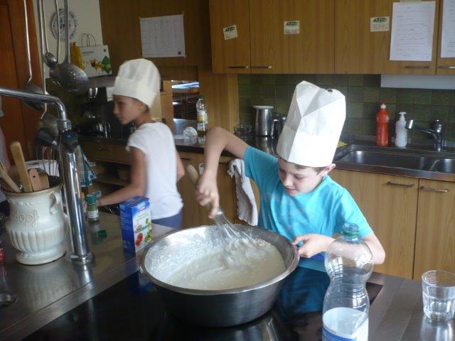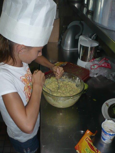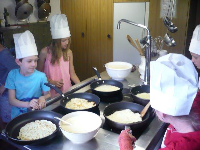 Als wir nach Hause kamen, mussten wir zuerst den Rucksack leeren. Ein Junge hat noch ein Minipick gefunden, das er von Zuhause mitnahm. Das heisst, er hatte es schon sehr lange im Rucksack. Schon nach 25 min fingen die einen Kinder an zu kochen und kurz darauf fingen wir an, den Tagesbericht zu schreiben. Die anderen hatten 3 Stunden Pause. Heute Abend gibt es als Vorspeise Guacamole mit Nacho Chips. Als Hauptgang gibt es Crèpes mit was man will. Zum Beispiel kann man Marmelade, Zucker, Nutella, Schinken, Käse, Hackfleisch, gebratenes Gemüse und so weiter als Füllung wählen. Sie machen das SUPER, denn es ist nicht einfach!