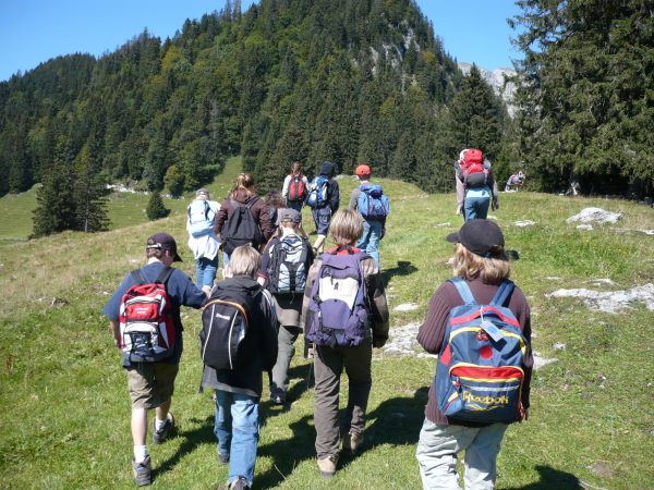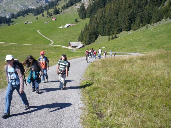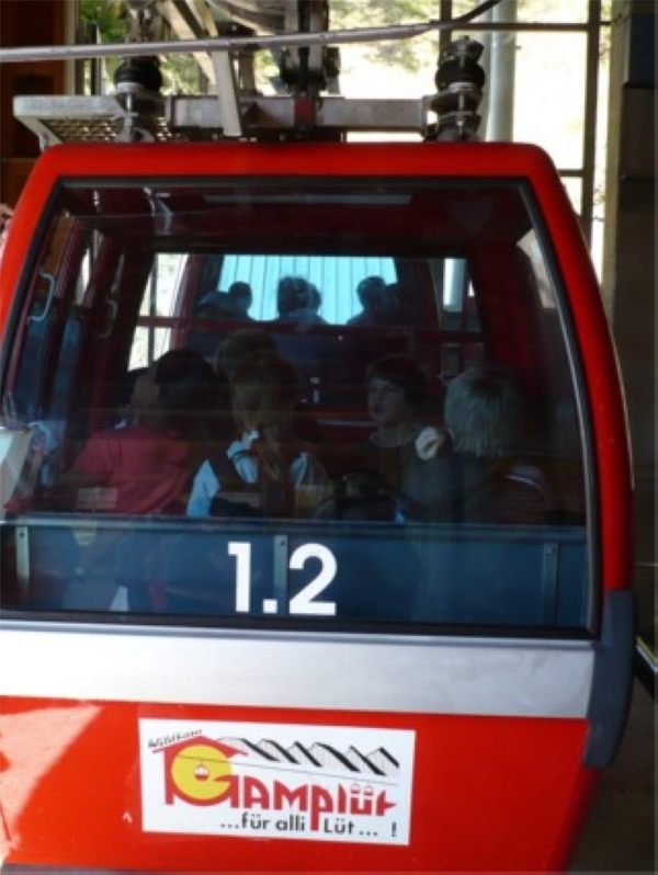 Heute standen wir um 8 Uhr auf und assen das Frühstück. Nachher putzte eine Gruppe den Boden, eine andere musste die Teller und Bestecke abwaschen und die restlichen Kinder spielten Tischtennis, Töggelikasten (Tischfussball) und diverse Spiele. Um 11 Uhr trafen wir uns vor dem Eingang und wanderten bis zu einem schönen Haus mit sehr vielen Blumen. Dann liefen wir bis zur Talstation der Gamplüt-Bahn. In den 6er-Gondelbahnen war es sehr lustig.