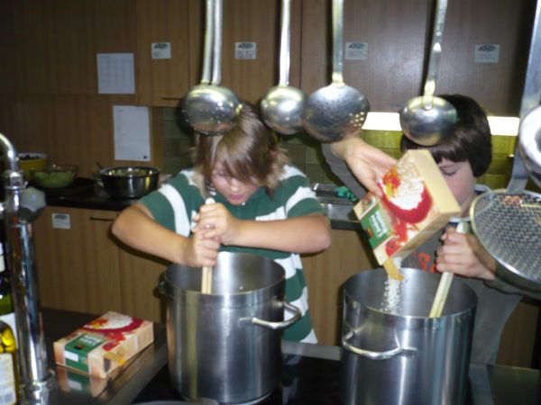 Als wir mit den langsamen Gondeln endlich oben angekommen waren, ging es mit unserer Panoramawanderung los. Nach einer halben Stunde bekamen wir allmählich Hunger. Wir suchten einen schönen Platz, doch leider ging es eine Weile bis wir einen guten fanden. Wir waren alle froh, dass wir endlich da waren und Z’Mittag essen konnten. Der Platz war eine Wiese mit grossen Steinen, die ganz überwachsen waren. Nach einer guten halben Stunde gingen wir weiter und hatten einen wunderschönen Blick auf den Säntis. Danach gingen wir wieder hinunter ins Dorf. Dort mussten wir noch für das Abendessen einkaufen. Mit einem Sessellift ging es wieder in Richtung „Höchi“. Wir gingen zum Haus zurück und packten unsere Rucksäcke aus. Nicolà, Cèdric, Nicola.K, Anthony und Moritz, machten Saltimbocca mit Risotto. Man konnte das feine Saltimbocca und den Risotto schon aus der Küche riechen. Dazu gab es einen Salat und danach noch eine feine „Tag und Nacht Creme“. Wie zu erwarten war das Essen einmal mehr hervorragend. Savana, Sandra, Tobias, Pascale und Paula machten den Abwasch. Yarza, Simon, Flurin, Filipe und Tyler mussten putzen. Die anderen Gruppen hatten frei. Heute ist der Abschlussabend mit einer Überraschung für Herrn Zwicky.