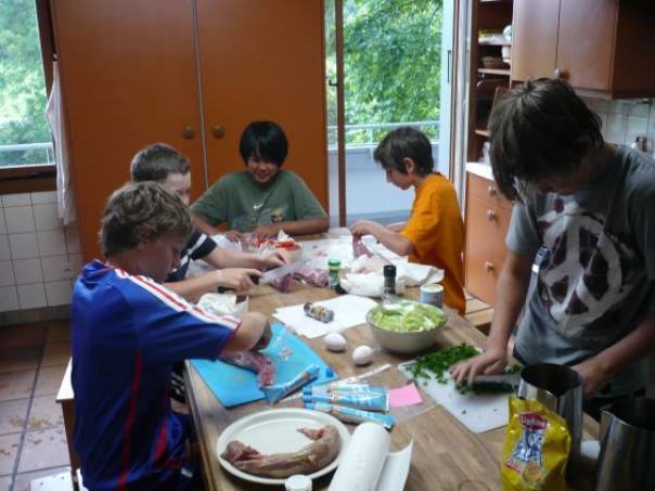 Momentan ist die Kochgruppe am Filet im Teig kochen. Ich habe Hunger, weil es sogar hier oben im Dachstock so fein riecht. Nach dem Essen werden wir wie jeden Tag den spannenden Lagerrat haben. Nach dem Lagerrat freue ich mich, und natürlich die anderen, auf die Abschlussfeier, denn dann wird’s richtig lustig. Lustig aber ist nicht, dass heute schon der letzte Tag ist. Morgen müssen wir darum schon wieder nach Hause und eigentlich würde ich lieber noch eine Woche hier in der Kulturmühle bleiben. |