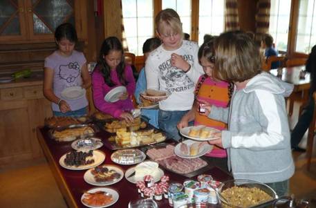 Heute Morgen sind wieder sechs Kinder mit viel Einsatz früh aufgestanden und haben wie immer sehr gutes Essen gemacht. Sie machten ein Buffet mit Joghurt, Trauben, Brot, Fleisch, Müesli, Marmelade, Käse und heute sogar mit Lachs und Feigen.