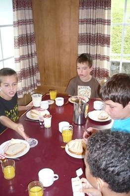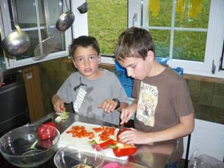 In der Küche riecht es schon super. Heute gibt es Tortillas mit Guacamole. Zum Dessert gibt es Frappés. Das war der letzte Abend. Es war eine tolle Woche hier, auch wenn einige Kinder manchmal ein bisschen Heimweh hatten und sich jetzt schon wieder auf ihre Familie freuen.
