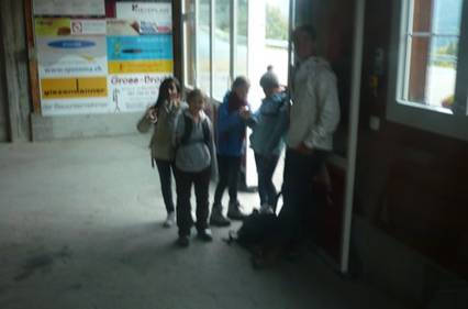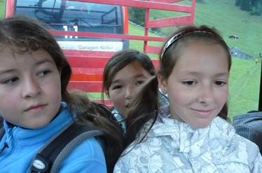 Doch plötzlich kam eine Kurve und wir sahen die Talstation der Seilbahn, die nach Gamplüt geht. Wir freuten uns, weil wir mit der Bahn auf den Berg fahren konnten und nicht laufen mussten. Als wir in die Gondel gehen wollten, blieben 5 zurück, weil es kein Platz mehr hatte.