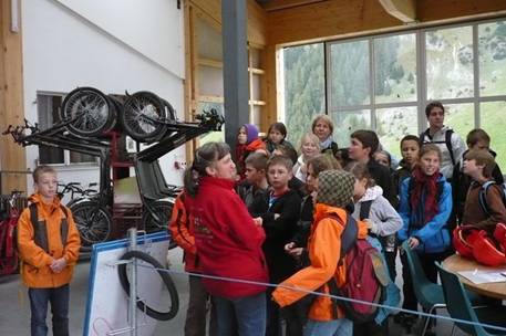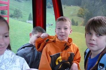 Es war sehr lustig, auch wenn manche Kinder lieber ein bisschen schneller gefahren wären. Schade, dass es so rasch vorbei war. Bald sahen wir die Talstation. Nun mussten wir die Helme und Trottinette wieder abgeben. Wir luden alles in die beiden Gondeln und waren froh, dass wir nicht in der Gondel waren. Wie man auf dem Foto sieht, wäre das zu viel für sie gewesen.