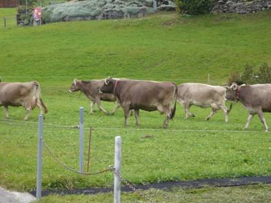 Jetzt gingen wir nach Hause. Auf dem Weg gingen wir an einem Militärposten vorbei. Jetzt gingen wir zurück in Richtung Lagerhaus. Auf dem Heimweg gab es die Möglichkeit, einen Sessellift zu nehmen, statt auf der Strasse heimzukehren. Ein paar Kinder mussten rauflaufen und die, die artig waren, gingen mit dem Sessellift. Die Kinder, die zu Fuss gingen, kürzten den Weg ab und gingen über die Wiesen. Dort hörten drei Kinder ein Schnauben. Luzius sah einige Stiere, die sehr aggressiv waren und Kühe über die Weiden jagten. Nicholas, Luzius und Nicolas rannten schnell davon.