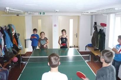 Endlich waren wir wieder zu Hause. Dort spielten wir oder lasen Bücher. Am Pingpongtisch ist Rundlauf am beliebtesten.