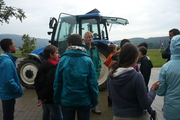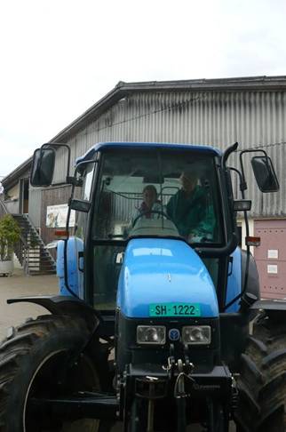 Die Kinder konnten es kaum erwarten, nach dem Frühstück auf dem Bauernhofgelände einmal alleine Traktor fahren zu dürfen. Das war die Belohnung, weil gestern so viele Zwiebeln zusammengelesen wurden. Selbstverständlich war Frau Morgenegg im Traktor an unserer Seite. Zuerst erklärte uns Frau Morgenegg wie man die Kupplung drücken und dann wieder langsam loslassen muss.