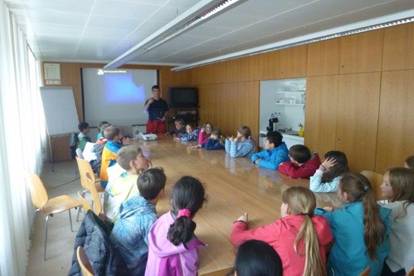 Das war der Sanität Posten. Dort durfte man sich einen Druckverband machen und eine Halskrause anziehen. Sie erklärte uns was man tun sollte, wenn man sich verbrennt hat und kein Wasser oder kein Pflaster dabei hat (man sollte feuchte Erde auf die Wunde tun). Danach gingen wir ins Feuerwehrlokal. Da erklärt uns der Feuerwehrmann über die Feuerwehreinsätze der Feuerwehr Zollikon. Er hat z.B. auch über die Namen der Feuerwehrautos erzählt. Und noch vieles mehr! Alles in allem war es ein toller Tag!