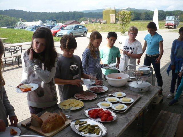 Sarah, Liv, Saloni, Lars, Nicolò und Mark Später durften wir in den hofeigenen Laden um Bio-Sachen zu kaufen. Viele Kinder haben Büffelmozzarella, Landjäger, Bolderhofkäse, aber auch Bio-Süssigkeiten gekauft. Die Kinder werden dieses Sachen ihren Familien zu Hause mitbringen, weil sie auch wollen, dass ihre Familie diese Sachen probieren. Später haben das letzte köstliche Mittagessen auf dem Bauernhof gegessen. Leider war es danach soweit und wir mussten unser Gepäck zum Bahnhof schleppen. Von dort gingen wir mit ein paar Mal umsteigen nach Hause. Die Familienangehörigen erwarteten uns schon am Bahnhof Zollikon. Wir waren traurig, dass das Klassenlager schon vorbei war, aber auch glücklich, dass wir unsere Familien wieder sehen konnten. Allen Kindern gefiel das Zusammenleben auf dem schönen Bolderhof sehr, das war ein tolles Erlebnis!