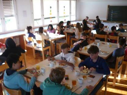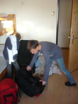 Diesmal wurden wir zum letzen Mal von dem Waldhorn geweckt und alle sind aufgewacht und haben sich angezogen für den letzen Zmorgen dieses Lagers. Nach dem Frühstück haben wir mit „voller Freude“ die Sandwiches gemacht und Herr Zwicky verkündigte uns den dreiseitigen Putzplan. Jeder Stock hatte eine Seite mit lauter Dinge zu erledigen z.B. Matratzen saugen, WC Papier auffüllen/je 2 rollen, Schränke feucht aufnehmen, WC und Duschen reinigen, Reinigungsmittel in der Waschküche auffüllen usw. Nach dem Frühstück sind wir zuerst Koffer Packen und danach haben wir mit Putzen begonnen. Das Putzen war einfacher als am Mittwoch, denn alle wussten schon wie. Es gab schon wie letztes Mal einen Wirbel, denn wenn man einen Lappen oder ein Waschmittel wollte, war es besetzt. Aber beim abbetten gab es wieder ein par Probleme. Es gab ein paar Kinder die konnten das Fixleintuch nicht abnehmen und sahen am Schluss wie ein Gespenst aus. Bei der Decke und dem Kissen war es gleich. Nachdem alles geputzt war, war es schon fast 1200 Uhr. Wir hatten noch etwas Zeit beim Haus und dann machten wir uns auf den Heimweg. Vor dem Abmarsch machten wir noch dieses Klassenfoto. Zuerst ging es dann zu Fuss etwa eine halbe Stunde zur Postautostation. In Flums mussten wir zuerst lange warten, dann nahmen wir den Zug und nach 2x umsteigen waren wir in Zollikon. Wir waren alle froh, dass wir wieder zu Hause waren, und doch war es ein tolles Lager!!!