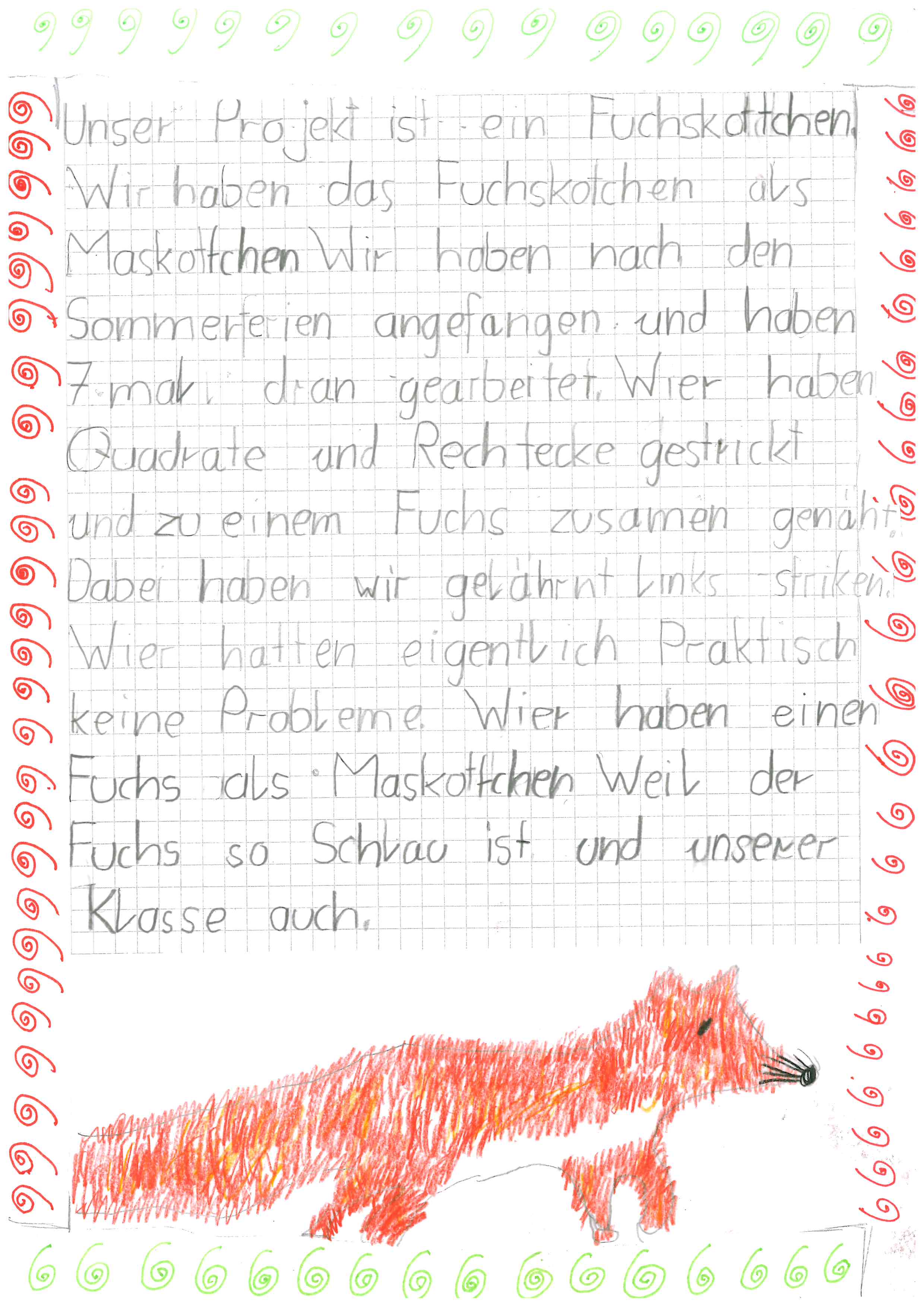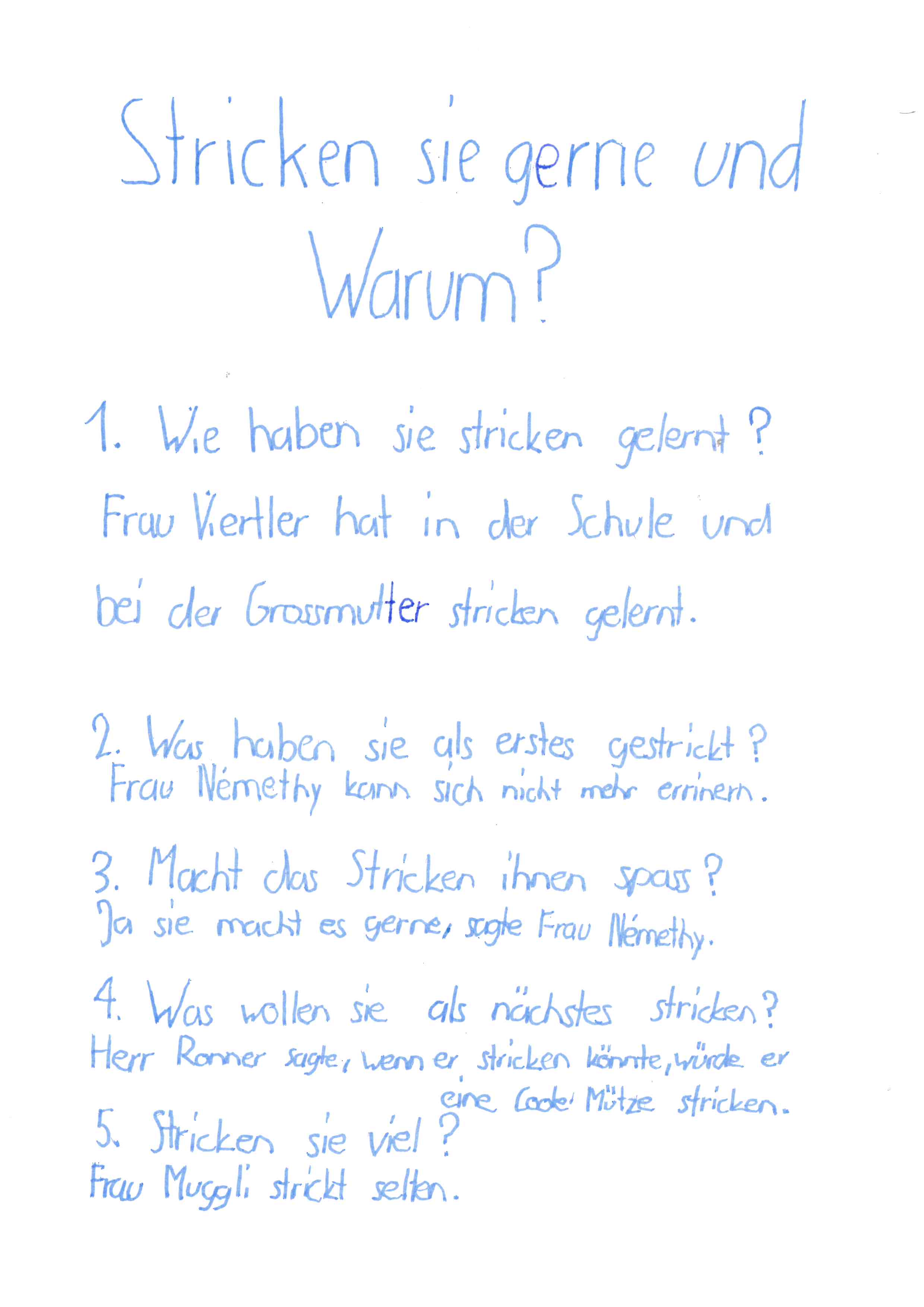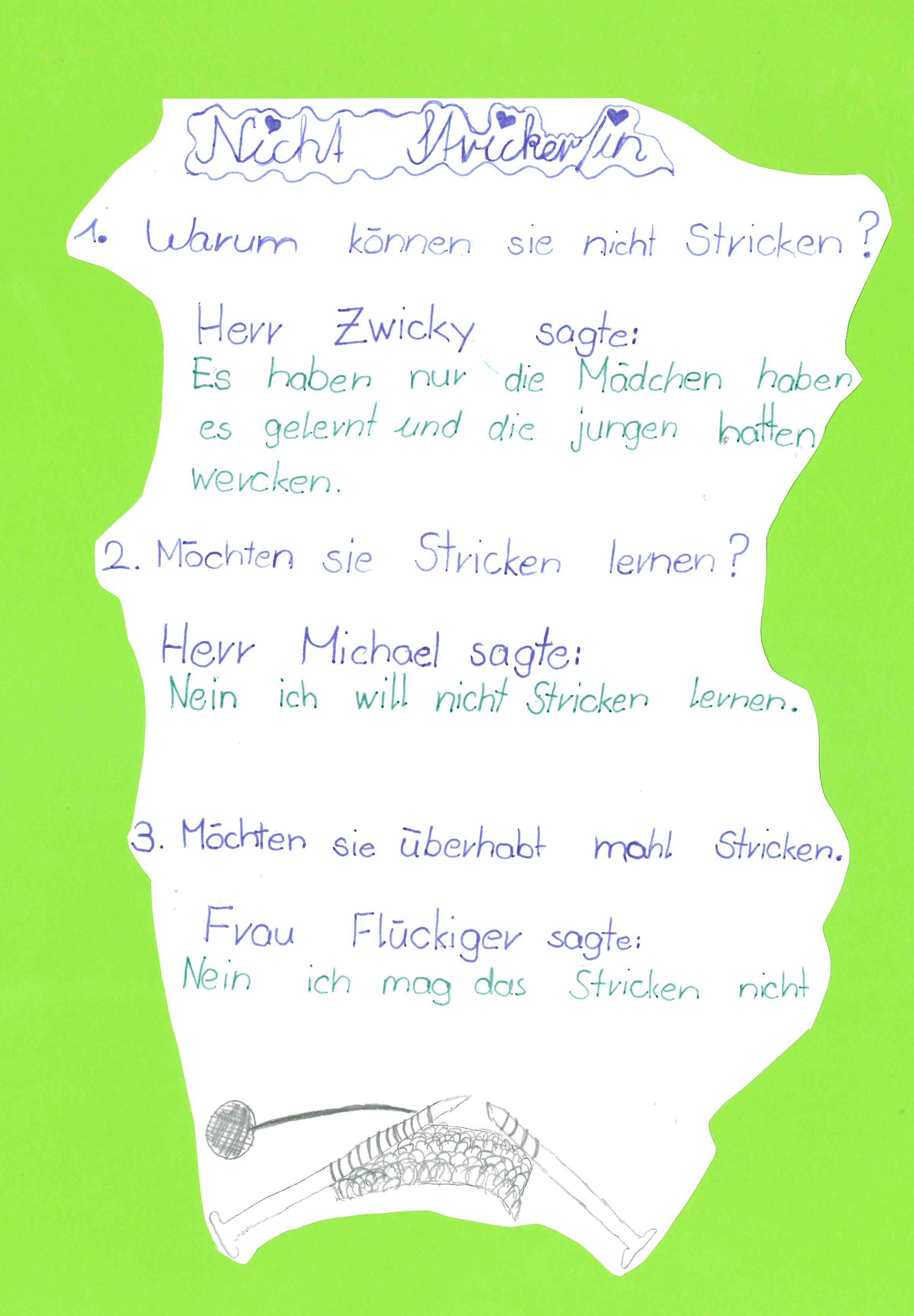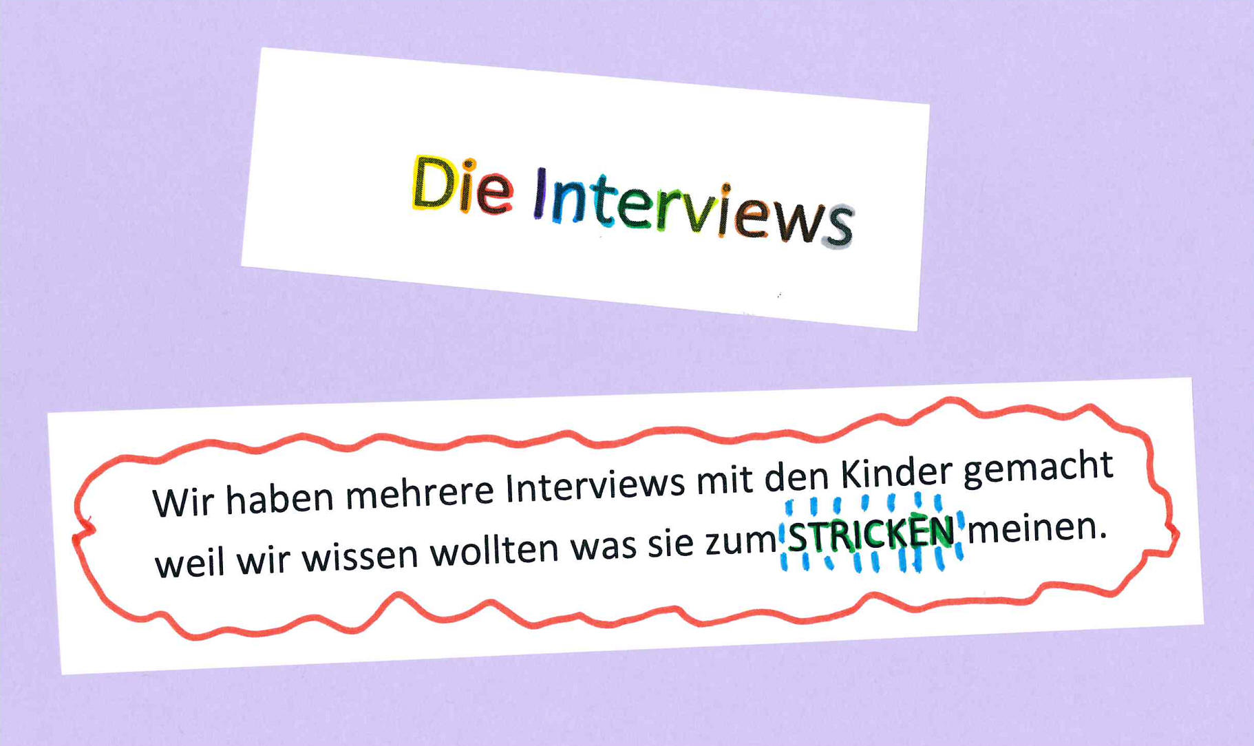 | Entstehung des Klassenmaskottchens | HIER kannst du Stricken lernen | Interviews mit verschiedenen Kindern | Interviews mit Lehrpersonen |