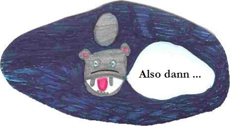 30. Der Fluss „Komm Phil, wir gehen der Schlucht entlang!“ Sie laufen und laufen und plötzlich sagt Mutter: „Sieh mal Phil, hier ist eine Felsspalte, komm wir gehen hinein!“ Phil folgt ihr, aber etwas mulmig ist ihm bei der Sache schon. An den Wänden hängen alles so komische skelettartige Knochen. Aber plötzlich stehen sie vor einem unterirdischen Fluss. „Wow!“, sagt Phil, „das ist ja wie in einem Krimi, zuerst die Knochen und jetzt das! Komm Mutter, wir springen in den Fluss.“ Diesmal zögerte Mutter, aber sie gibt nach und springt auch in den Fluss. „Der Fluss zieht ganz schön!“, sagt Mutter. Und das was sie jetzt sieht, lässt sie erstarren. Der Fluss macht einen Sprung und geht dann wirklich ganz unterirdisch weiter. Aber zum Glück hat es vorher einige Gitterstäbe. „Phil, geh mit den Füssen voran und fang dich so auf.“ Phil gehorcht sofort und geht mit den Füssen voran an die Gitterstäbe. Nach etwa zwei Minuten sagt Phil: „Hilfe, ich kann mich nicht mehr halten.“ In diesem Moment sagt eine tiefe brummende Stimme: „Habt ihr Probleme?“, und ein Nilpferd streckt den Kopf aus dem Wasser. „Ja das kann man wohl sagen“, sagt Mutter.