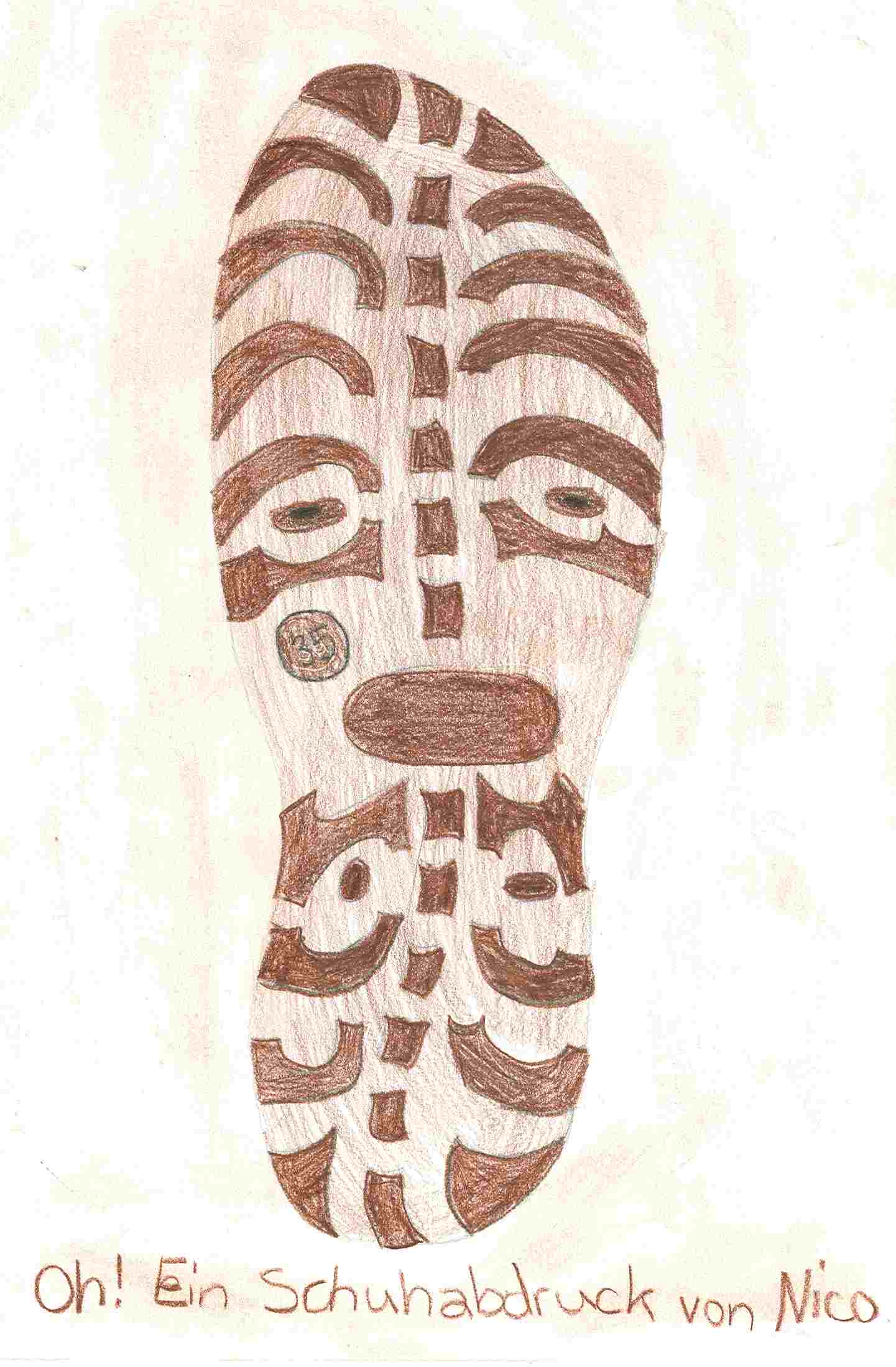 immer weiter. Da sehen sie einen Fussabdruck. Er ist von Nico. Sie
