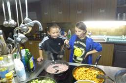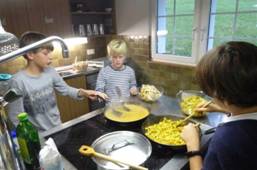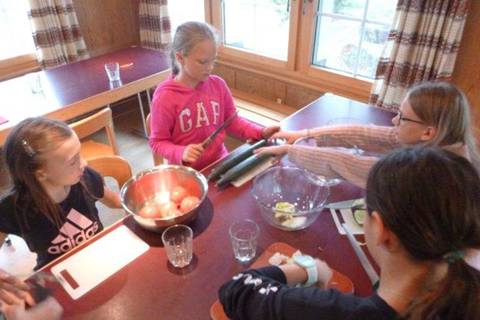 Heute gibt es zur Hauptspeise Tortillas mit verschiedenen Sachen, die man rein füllt. Es gibt keine Vorspeise, weil es Salat zum rein füllen hat. Es riecht schon sehr lecker, alle Kinder freuen sich auf das fein riechende Essen. Im Moment hört man die Gruppe singen und schnattern, hoffentlich arbeiten sie auch fleissig!