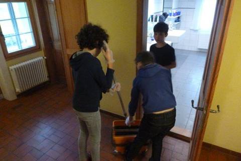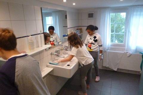 Jetzt aber von heute: Nach dem Frühstück putzten wieder einmal ein paar Kinder.