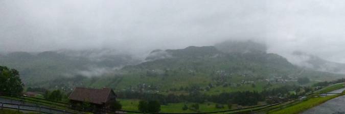 Heute war es nicht so schön, es regnete fast den ganzen Tag und Nebel hatte es auch. Als wir aus dem Fenster schauten, hatte es Nebel🙁. Wir konnten fast nichts machen, ausser Spiele spielen. Gegen Abend wurde es draussen schön, dann konnten wir draussen etwas tun. Aber es wurde nie lang schön. Aber als es schön war, haben wir es genossen.