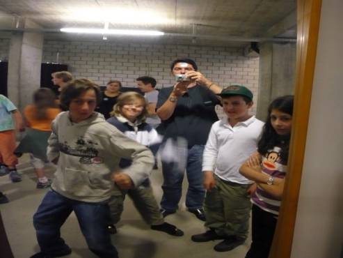 Danach gingen wir zusammen in einen dunklen Raum. Dort zeigt er uns die Farben: Rot, Blau, Gelb, Grün und Weiss. Er wollte zeigen, wie die Farben auf uns einwirken. Alle Kinder konnten nach vorne in das Licht von drei Scheinwerfern gehen.