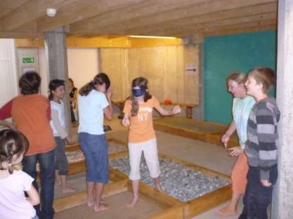 Nach der Führung konnten wir alleine die Posten ausprobieren. Das war sehr witzig. Zum Beispiel hatte es einen Blind-Fuss-Parcours.
