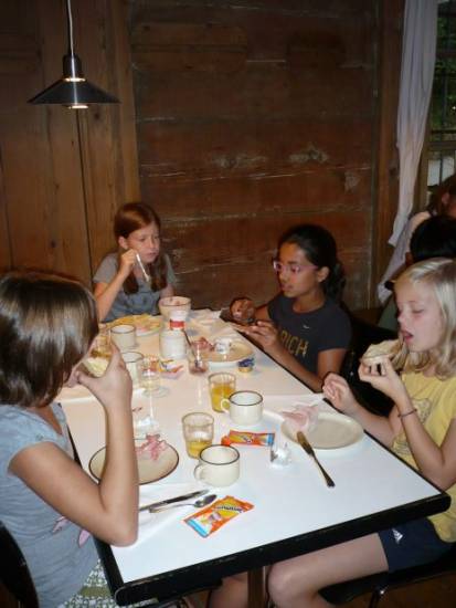 Mittwoch, 10. September 2008 Um 7 Uhr stand ich auf. Ich schlief viel besser als gestern, weil es bequemer war im Schlafsack zu schlafen. Etwa um 8 Uhr gab es Frühstück im Esszimmer. Auf dem Buffet gab es eine Käsedegustation mit Emmentalerkäse von Affoltern, die wir gestern gekauft hatten.