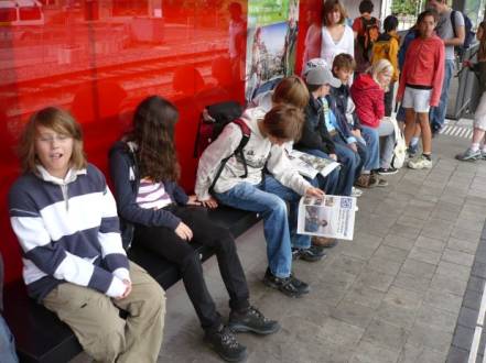 Als alle bereit waren, wanderte die Schulklasse zum Bahnhof Lützelflüh. Diesen Weg kannten wir bereits. Dort am Bahnhof hatte es Sitzbänke, welche man per Knopfdruck erwärmen konnte. Das finde ich einmalig, denn ich habe so etwas noch nie gesehen!