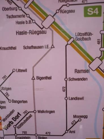 Leider waren 3 von 4 wärmenden Plätze defekt. Als der Zug kam, fuhren wir eine Station nach Hasle-Rügsau. In Hasle–Rügsau stiegen wir in einen Zug, der nach Walkringen fuhr.