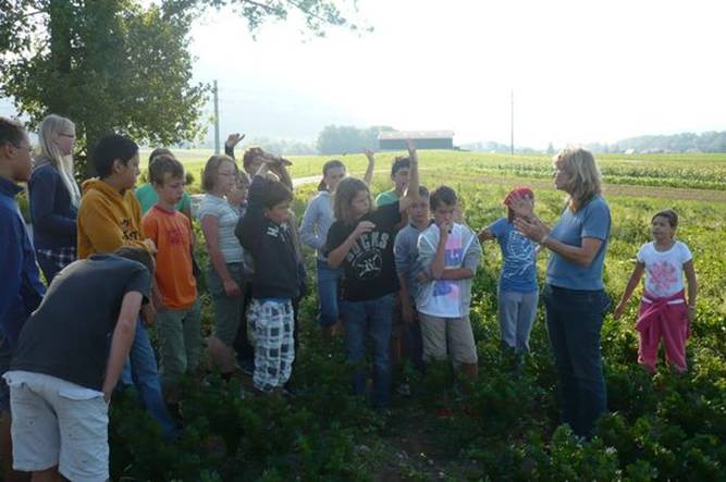 Später auf dem Feld lautete die Frage von Frau Morgenegg: “Was ist gemeint mit dem Wort BIO?“ Selbstverständlich wussten einige Kinder die Antwort. Diese Antwort aber war wie bei einem Puzzle! Den niemand wusste die ganze Antwort. Wir fanden sie miteinander heraus und waren danach ein Stückchen schlauer als vorher!