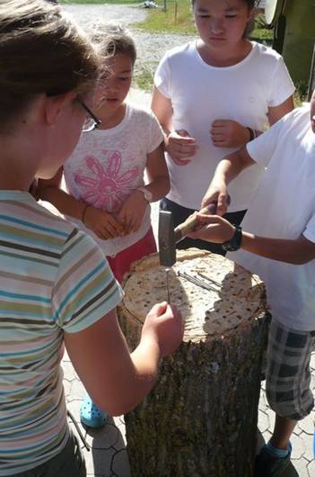 Danach mussten wir Nägel einschlagen, was eigentlich sehr lustig war, denn alle riefen immer: „Los, schneller mach mal!“ Hier gewann endlich mal die Gruppe „Wasserbüffel“.