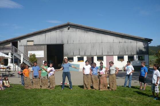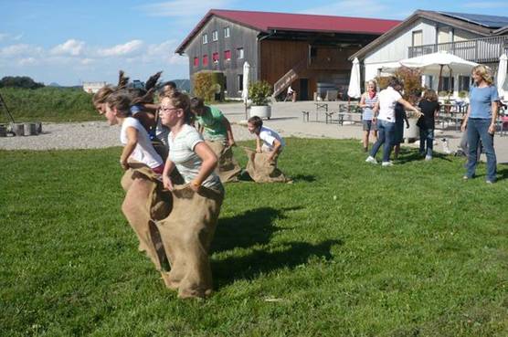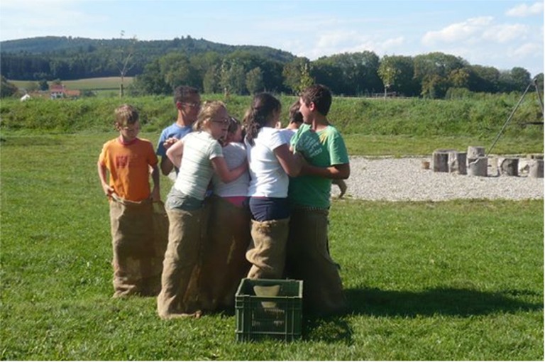Das letzte Spiel war das bekannte Spiel Sackhüpfen das alle sehr lustig fanden. Speziell war, dass immer 4 Säcke zusammengebunden waren. Hier gewannen die „Wasserbüffel“ leider wieder so knapp, denn jemand stolperte und die anderen liefen ins Ziel.