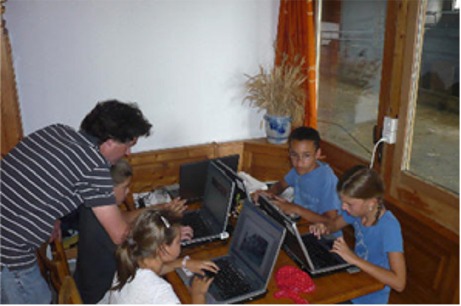 Dieser Morgen verlief wie immer! Alle Kinder schliefen friedlich in ihrem Strohbett. Herr Egli weckte einige Kinder die am Vorabend beschlossen haben, zusammen mit ihm joggen zu gehen! Dummerweise mussten diese Kinder schon um 5:50 Uhr sich aus dem Bett zwingen! Für alle die dies interessiert, eigentlich waren es nur fünf Kinder, nämlich: Nicholas Nicolas Moira Nemanja und Jocelyn! Wir machten uns bereit für die kleine Runde, die wir joggten! Die Jungs voraus und die Mädchen zusammen mit Herr Egli hinten rein. Wir besprachen unsere Runde und gingen ihr nach! Wir waren so zu sagen unser eigenes GPS. Als wir um Punkt 6:30 Uhr wieder auf dem Hofplatz versammelt waren, stürmten alle wieder in ihre Strohbetten! Doch nicht alle konnten friedlich weiter dösen, denn um 6:45 Uhr kam auch schon Herr Zwicky! Er weckte fast alle Kinder bis auf die Tagesbericht-Gruppe, also wir und die Ordnungs-Gruppe. Die anderen widmeten sich wieder ihren „Ämtlis“! Wie man hier erkennen kann, melken Olaya, Edward, Michael und Nina gerade die Kühe. Was man eigentlich nicht richtig sagen kann, da sie damit beschäftigt waren auf dem Foto zu lächeln.