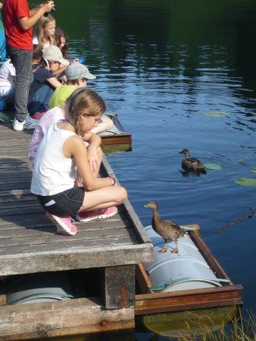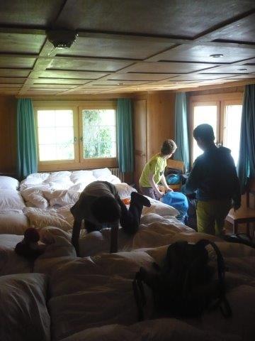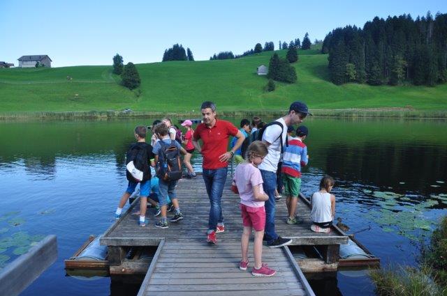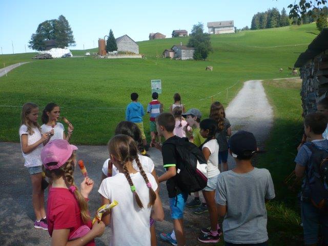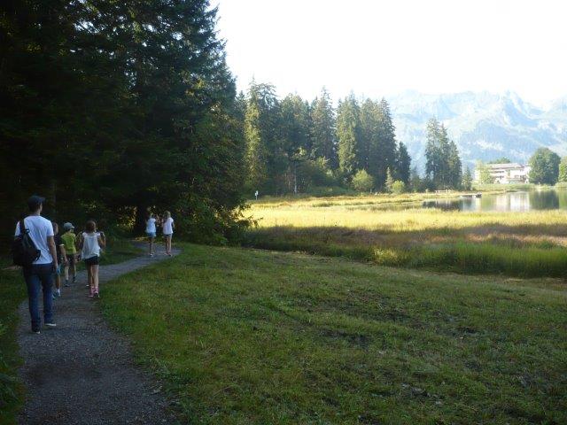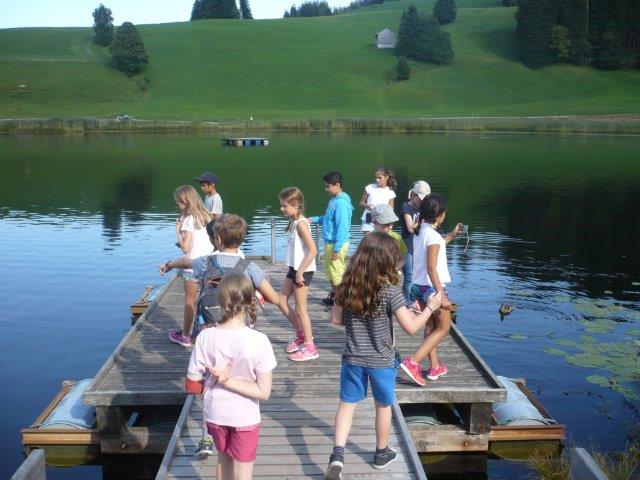 Danach gab es Mittagessen, nämlich: Brötchen mit Schinken, Lyonerwurst, Salami und Käse. Nach dem Mittagessen machte Herr Zwicky eine Hausführung. Er zeigte uns alle Zimmer. Wir mussten die Betten selber beziehen (Es war sehr schwer!). Wir haben dann die Koffer ausgepackt, die Zimmer mussten PERFEKT aussehen! Nach der Zimmerinspektion gingen wir zum Schwendisee und auf dem Weg beglückte uns Sebastians Grossvater mit Winnetou Glacés und Lollipops . Danach umrundeten wir den Schwendisee. Auf halbem Weg sahen wir eine Ente mit nur einem Bein! Im Schwendisee gibt es Blutegel, die aussehen wie Bluttschneckenregenwürmer die plattgewalzt wurden.