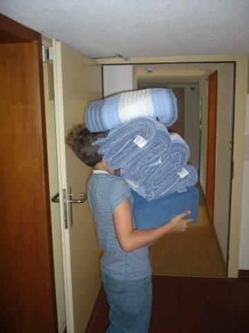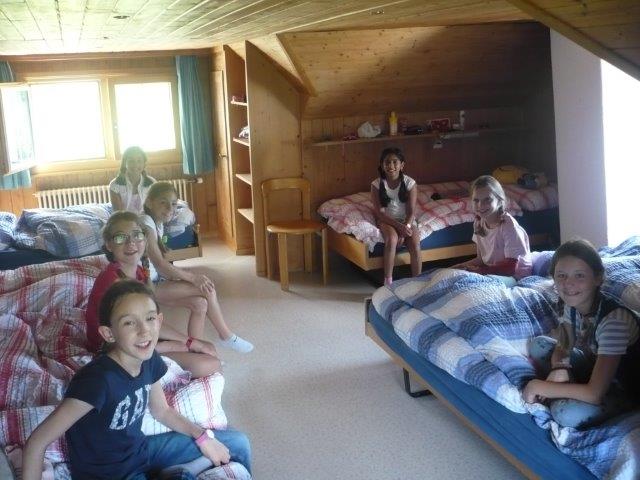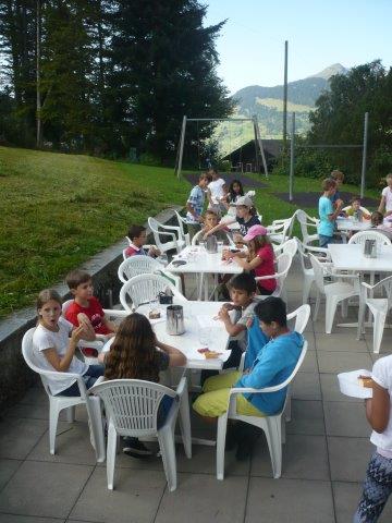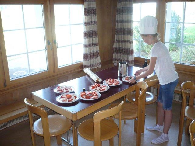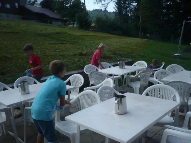 Als wir oben angekommen sind waren wir sehr glücklich, dass wir es geschafft haben. Danach hatten wir eine kurze Pause und haben draussen gespielt. Dann mussten wir die Tische aufstellen und putzen.
