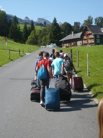 Wir fuhren mit der S6 von Zollikon nach Meilen. Schon in diesem Zug hat ein Kind seinen Rucksack vergessen. Glücklicherweise hat Herr Meier den Rucksack gerettet und ihn dem Kind zurückgegeben. Danke Herr Meier! Dann ging es mit der S7 weiter nach Rapperswil und danach ging es mit der S6 weiter. Eine Frau stieg in den Zug ein und ihr Rucksack verfing sich am Koffer eines Kindes! Sie schrie dieses Kind an. Ausserdem schmiss sie den Rucksack eines Kindes auf das Kind. Frau Némethy versuchte die Frau zu beruhigen, es klappte so halb. Der nächste Zug die SOB fuhr uns nach Wattwil. Weiter ging es mit dem Thurbo nach Nesslau- Neu St. Johann. Von St. Johann ging es mit dem Postauto nach Wildhaus. Das heisst wir mussten fünfmal umsteigen, unser Lehrer hat es NICHT so toll gefunden. Der Weg bis nach Wildhaus war sehr kurvig. Wir stiegen aus und der erste Atemzug im Toggenburg war der beste, es war nämlich sehr ländlich. Als wir in Wildhaus angekommen sind mussten wir ungefähr 45 Minuten eine steile Strasse bis zum Lagerhaus Höchi laufen. Es war sehr anstrengend, weil wir unsere Koffer schleppen mussten.