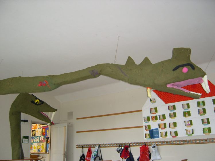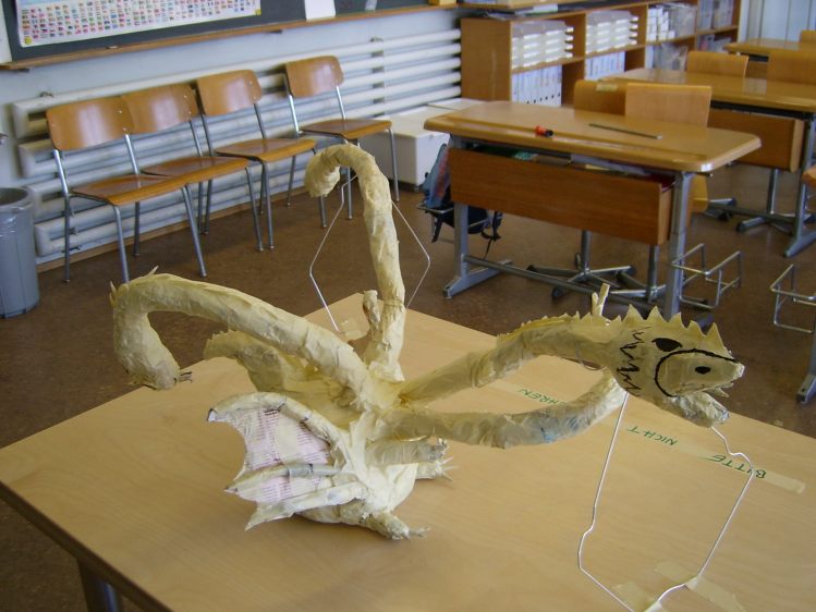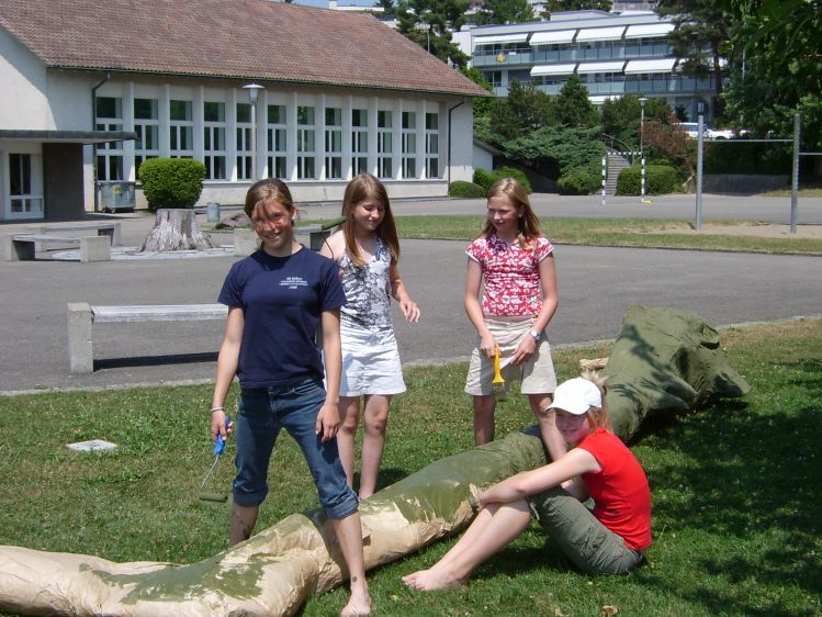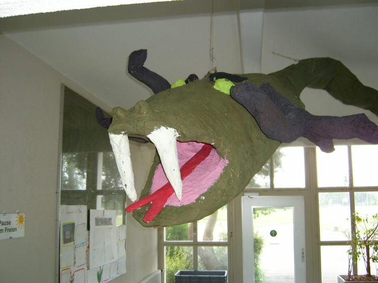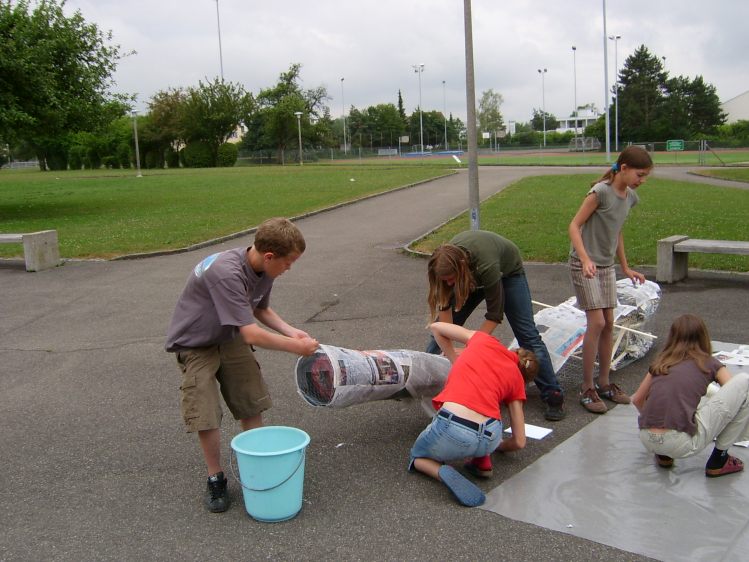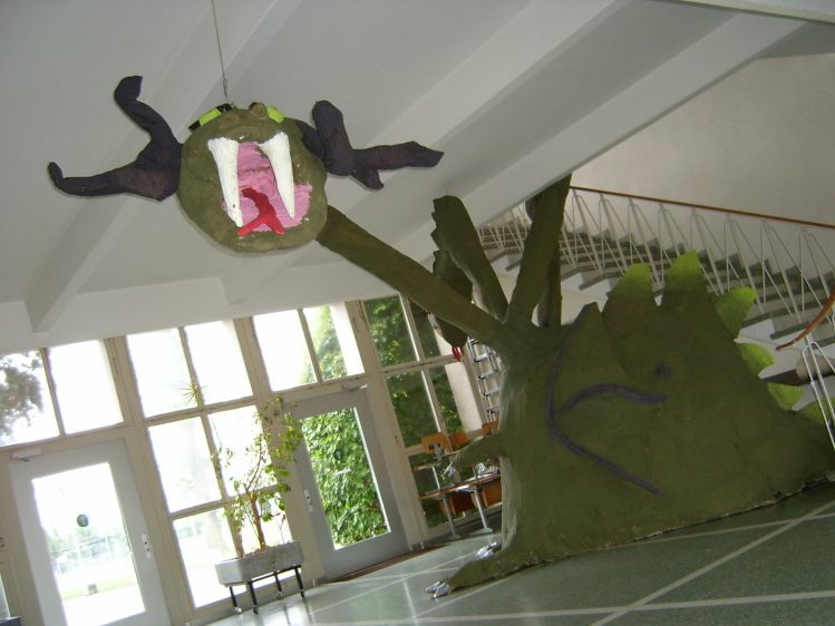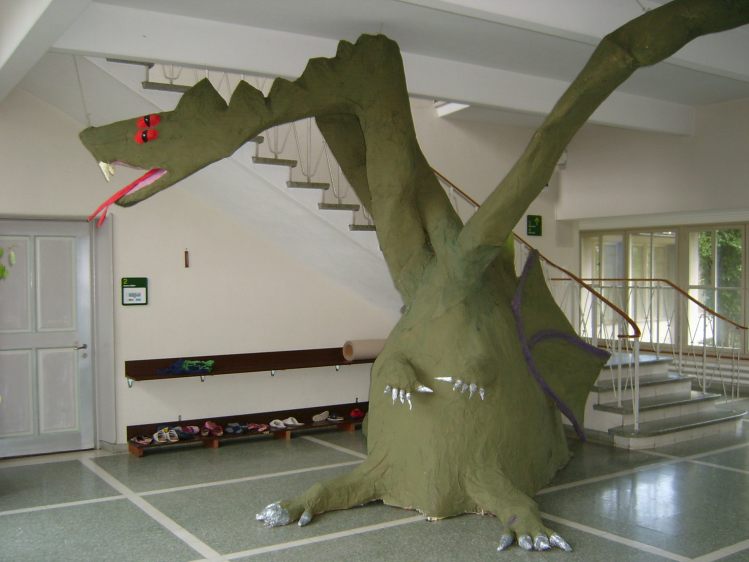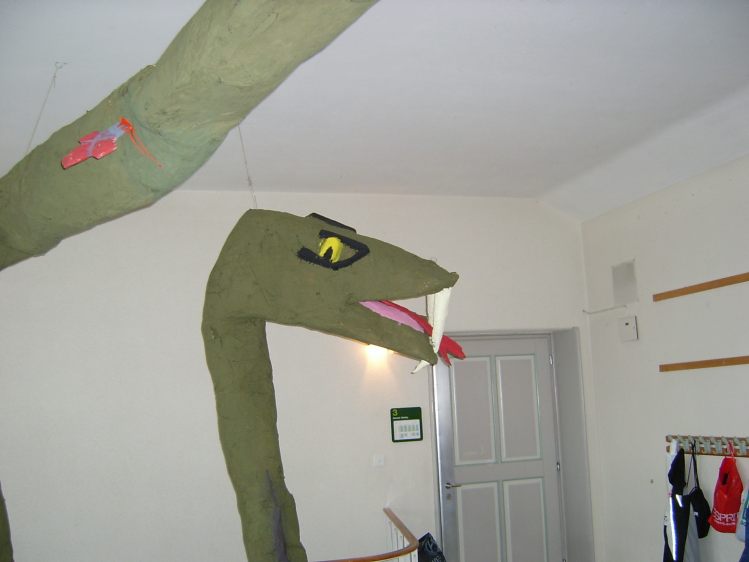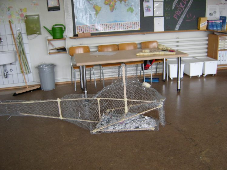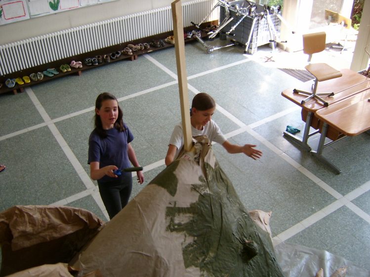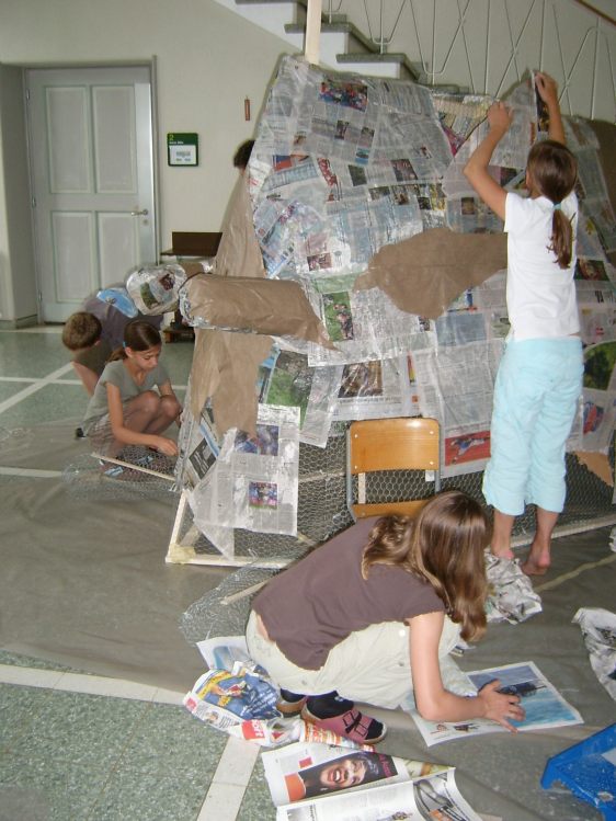 Als Abschluss nach 3 Jahren Mittelstufe haben wir dem Schulhaus ein "Getier" hinterlassen. Während einer Woche wurde mit Holz, Gitter und viel Kleister gearbeitet ...