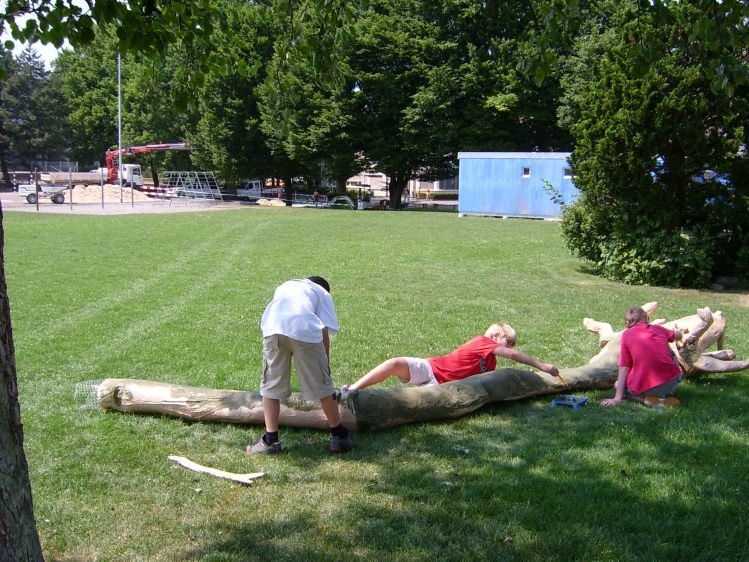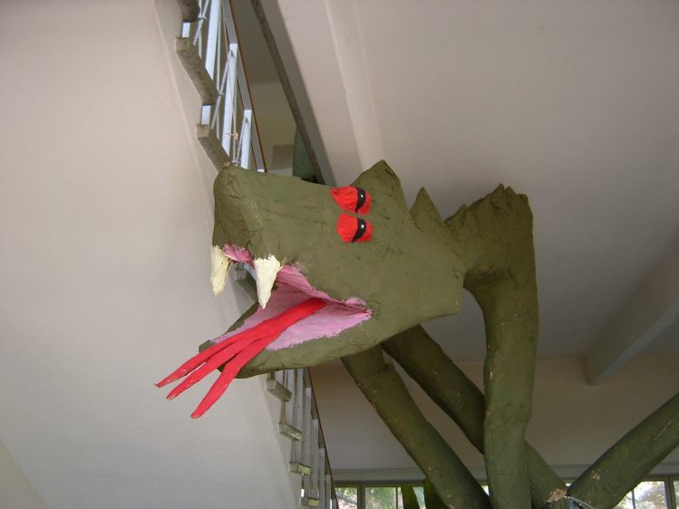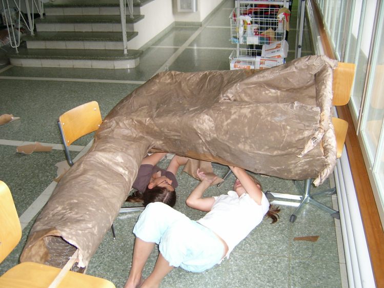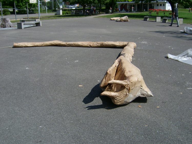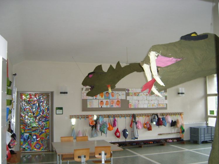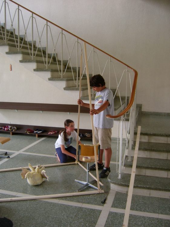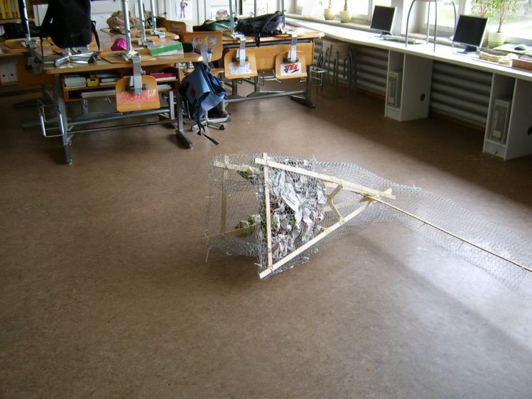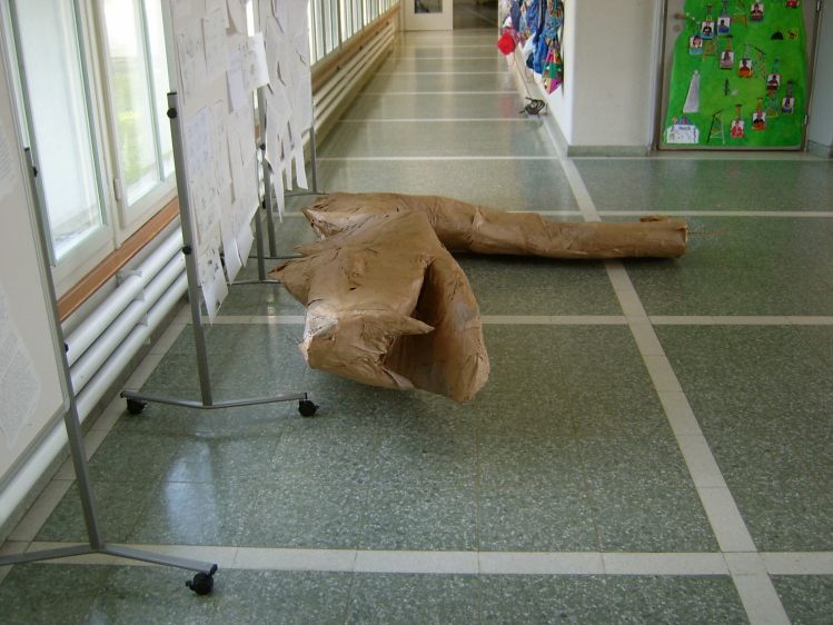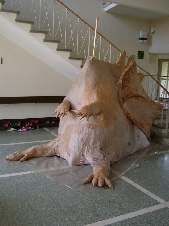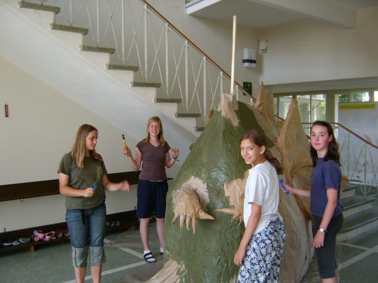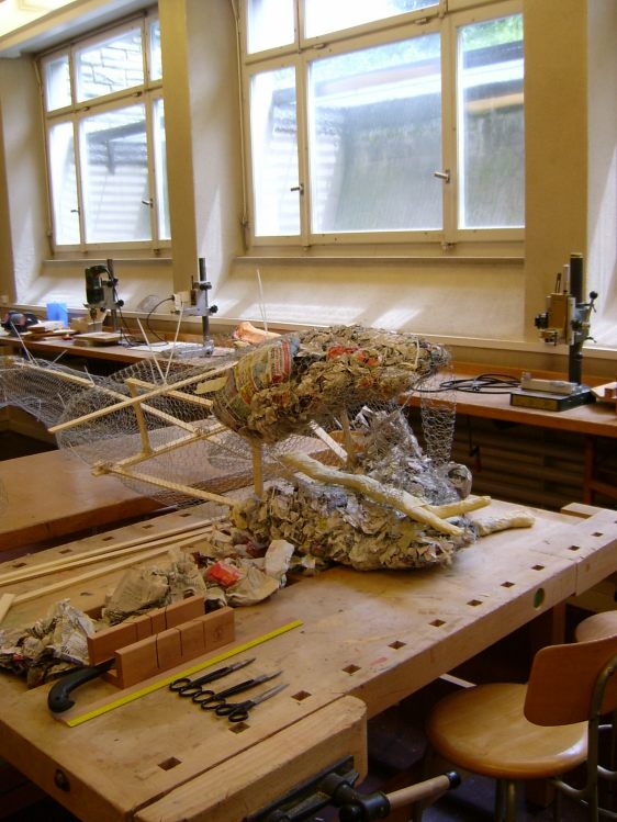 Als Abschluss nach 3 Jahren Mittelstufe haben wir dem Schulhaus ein "Getier" hinterlassen. Während einer Woche wurde mit Holz, Gitter und viel Kleister gearbeitet ...