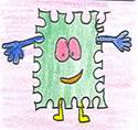 geklebt und in das Maul eines grossen, gelben Monsters geworfen.