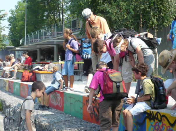 Nach den Mauereidechsen wird er uns die Wanderfalken zeigen. Und wir alle freuten uns auf den Znüni auf der Josefswiese. Wir liefen in Richtung Kamin der Kehrichtverbrennungsanlage Josefstrasse. Endlich sahen wir den Kamin an der Josefstrasse Zürich.