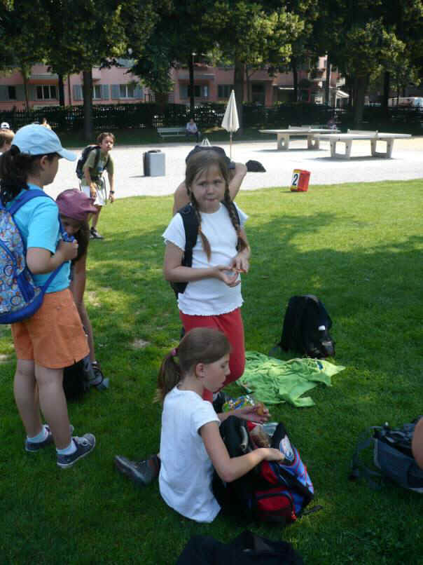 Joceline bekam sogar ein Schoggigipfeli von Frau Lebrecht (Handarbeitslehrerin Oescher). Jeder hatte Verschiedenes dabei. Fast alle tauschten mit ihren Klassenkameraden Lebensmittel. An der Josefswiese war es sehr gemütlich.