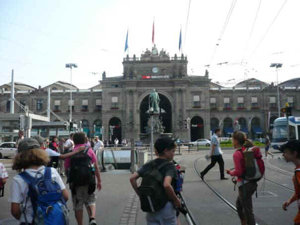 Wir waren froh, dass wir am Bahnhof waren weil uns Herr Ineichen ein paar Tiere zeigen würde und erklären was sie machen und wo sie wohnen. Endlich sehen wir Herr Ineichen der eine Tasche aus dem Zoo mit einem Nasenbär drauf hatte. Wir machen einen Halbkreis um ihn damit wir ihn alle hören können. Wir dürfen ihm alle Fragen stellen. Er fragt uns aber auch ein Paar Fragen, wie zum Beispiel was für Tiere auf einem Bahnhof leben. Das sind übrigens Tauben und Spatzen. Natürlich kommen manchmal auch andere Tiere in den Bahnhof. Danach vertiefen wir uns ins spannende Thema Tauben! Herr Ineichen sagte uns warum die Tauben eine zu grosse Population haben. Der Kot der Tauben kann Krankheiten übertragen. Man baut Nester für die Tauben und die Eier sticht man dann an und so gibt es weniger junge Tauben. Aber trotzdem gibt es noch viele Tauben. Dann gingen wir weiter zu den Gleisen. Da oben sind meistens Spatzen, Tauben passen da nicht mehr so gut herein. Er zeigte uns wo sich die Spatzen baden. Da nehmen die Spatzen ein Staubbad; sie wälzen sich darin. Als wir alle bei der Statue von Salomon Gessner waren, sassen alle hin und begannen zu essen. Doch Herr Ineichen wollte uns etwas erzählen und darum mussten wir alles wieder weglegen. Herr Ineichen erzählte uns von Salomon Gessner der im Mittelalter lebte und dass er viele Bücher über Natur, Alpen und Tiere schrieb. Er erzählte uns auch dass man seine Geschichten sogar in Finnland gekannt hatte. Dazu erzählte er uns auch dass die Amsel früher kein Stadttier war sondern erst in der Stadt lebt, seit es Pärke, Bäume, Gras, und Wiesen gibt. Gerade dann sahen wir eine Amsel. So ein Zufall! Als Herr Ineichen fertig von der Limmat erzählt hat, gingen wir zum Mauereidechsengebiet. Als wir da waren, hat uns Herr Ineichen alles über Mauereidechsen erzählt, z.b. hat er gesagt, dass die Mauereidechsen sehr gerne zwischen den Steinen sind, weil es warm ist.
