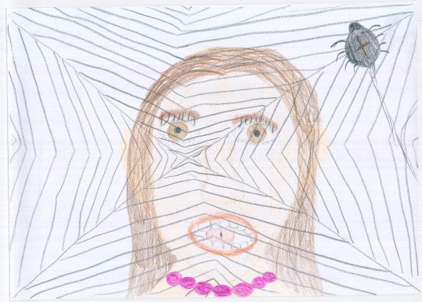 denn?“ „Ich bin mit dem Gesicht in eine Spinnwebe gekommen!“,