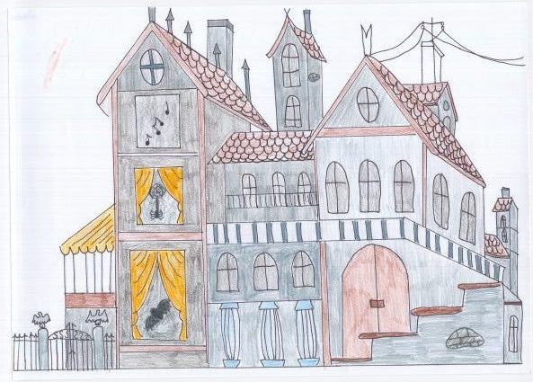 die alte Villa. Als Tim und Sara hinein gehen erschrecken sie. Ihre