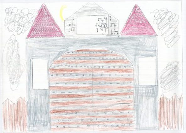 ins Haus und laufen eine sehr alte Treppe hinauf. Sie folgen der Musik