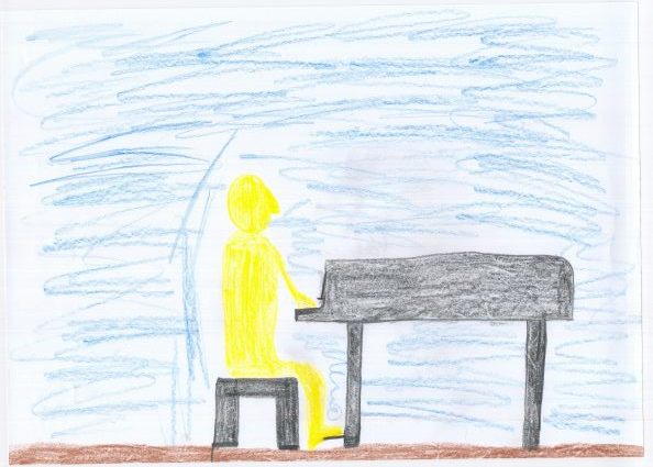 hinausgefallen sind. Sie gehen hinein. „Dort ist ja das Klavier“, flüstert