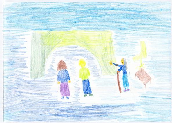 ist alt, aber sie ist noch nett zu den Kinder. Sie gibt Sara und Tim